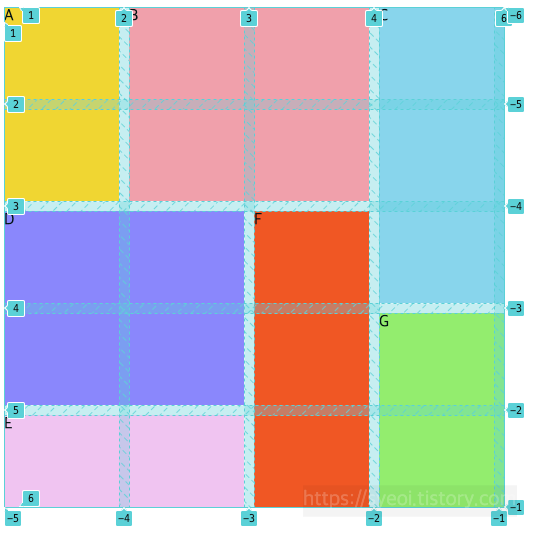 위의 두 가지 방법으로 아래의 레이아웃 예제를 구성해 보자! (개발자 도구창에서 그리드 눌러 그리드 라인 확인이 가능하다.)